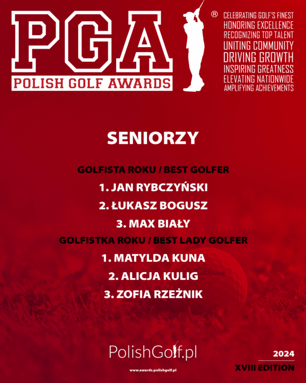 Z wielką radością ogłaszamy wyniki zakończonej 18. edycji prestiżowego plebiscytu „PGA – Polish Golf Awards”, który co roku wyróżnia najlepszych zawodników, kluby, wydarzenia oraz osoby przyczyniające się do rozwoju golfa w Polsce. Miniony rok przyniósł wiele sportowych emocji, imponujących osiągnięć i inspirujących inicjatyw, które zasługują na uznanie.
